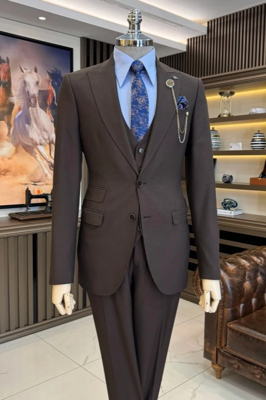 Hugh Coffee Peaked Lapel Three Pieces Business Men Suits