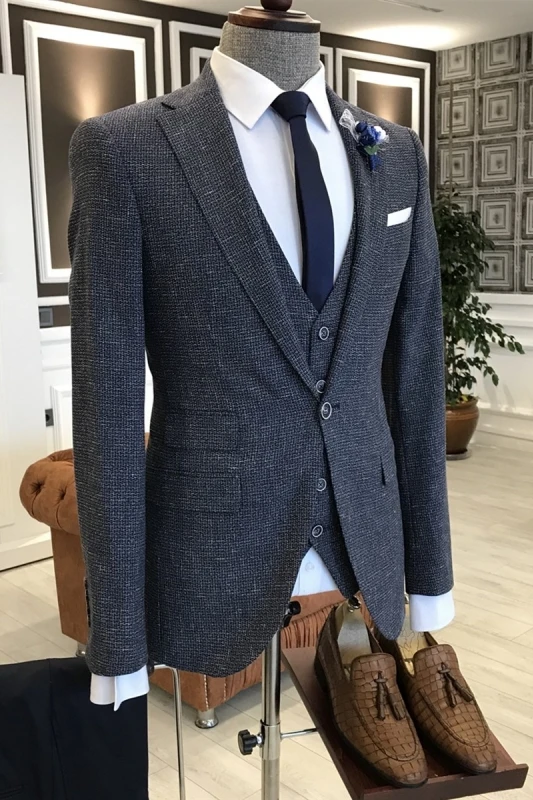 Humphrey Navy Blue Notched Lapel Three Pieces Business Suits