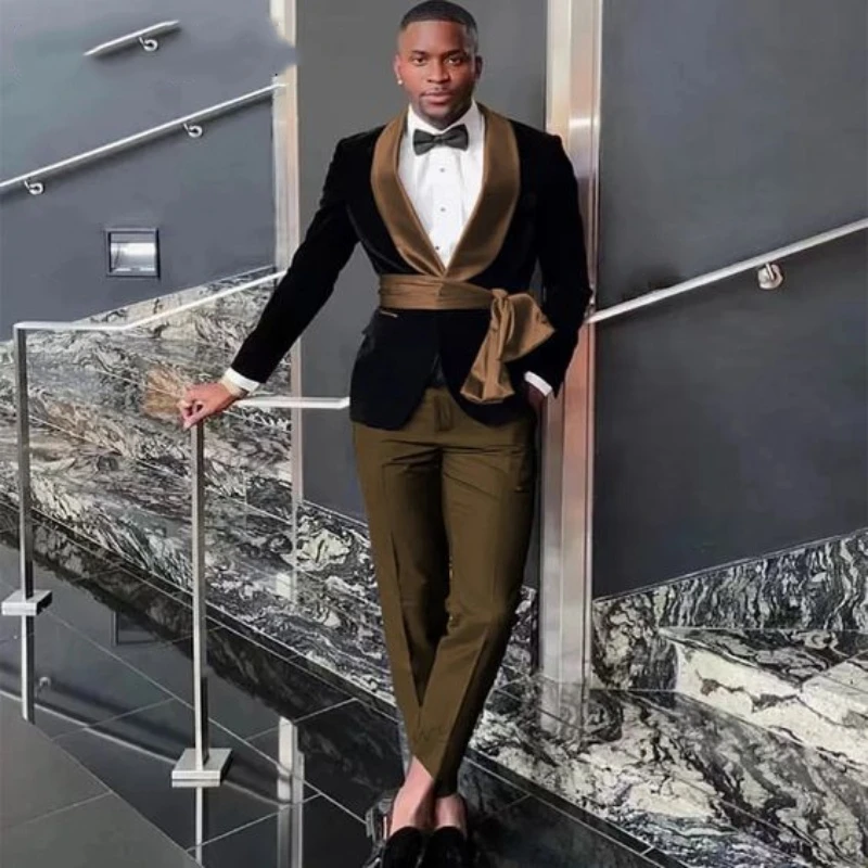 Ian Fashion Black Shawl Lapel Velvet Prom Suits For Men