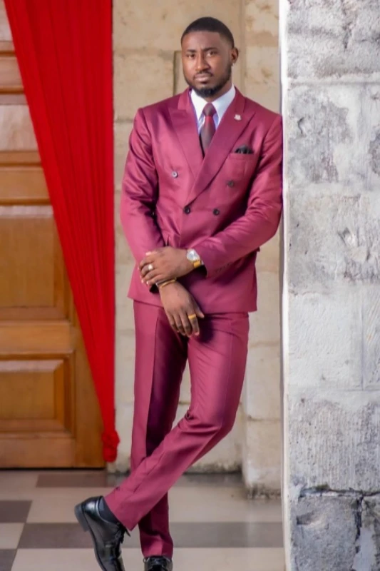 Ingram Burgundy Peaked Lapel Double Breasted Prom Men Suits