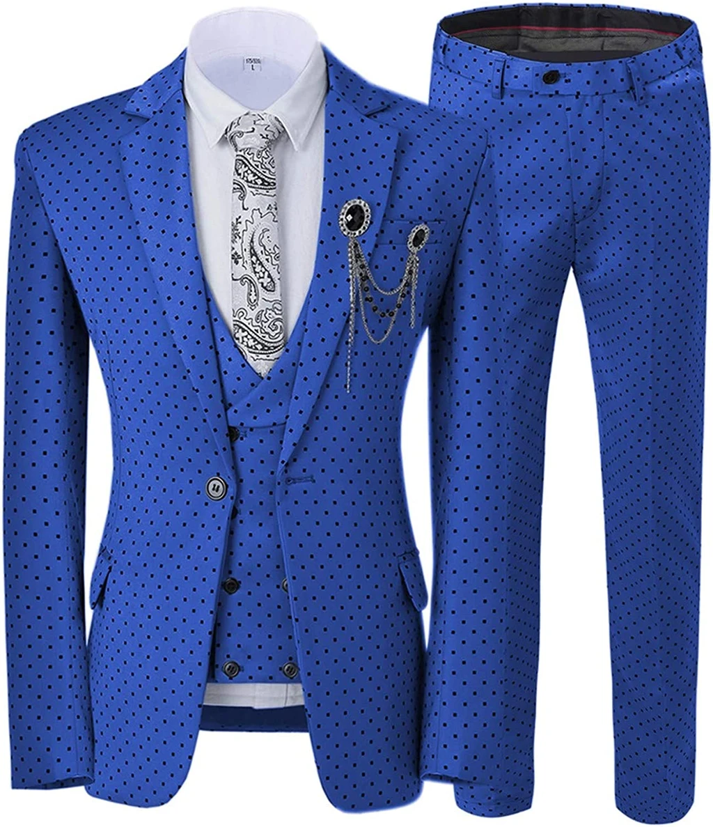 Ira Newest Royal Blue Notched Lapel Three Pieces Prom Suits With Black Dot