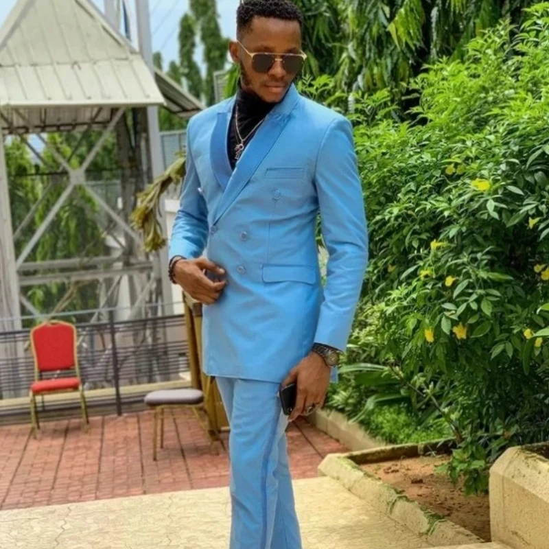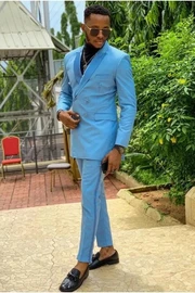 Jackson Ocean Blue Peaked Lapel Double Breasted Prom Men Suits