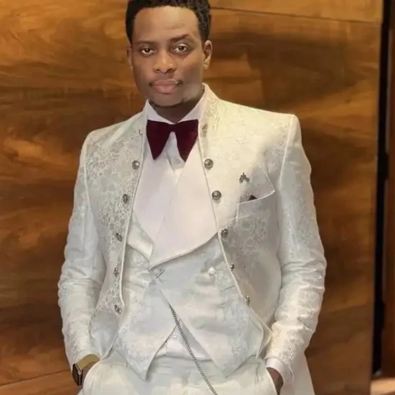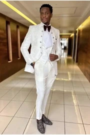 Jackson White Shawl Lapel Three Pieces Jacquard Men Suits Best Fitted Wedding