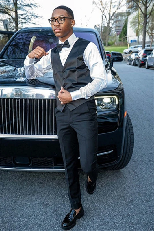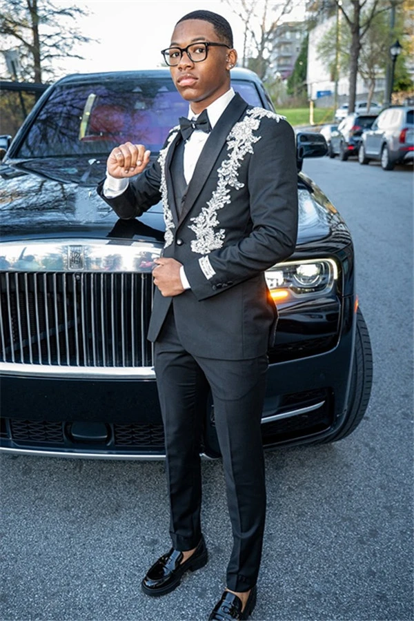 Jaden Black Shawl Lapel Three Pieces Appliques Prom Men Suits Near Me