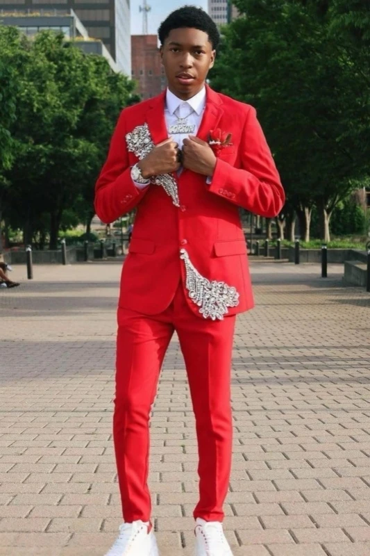 Jared New Arrival Red Notched Lapel Appliques Prom Men Suits