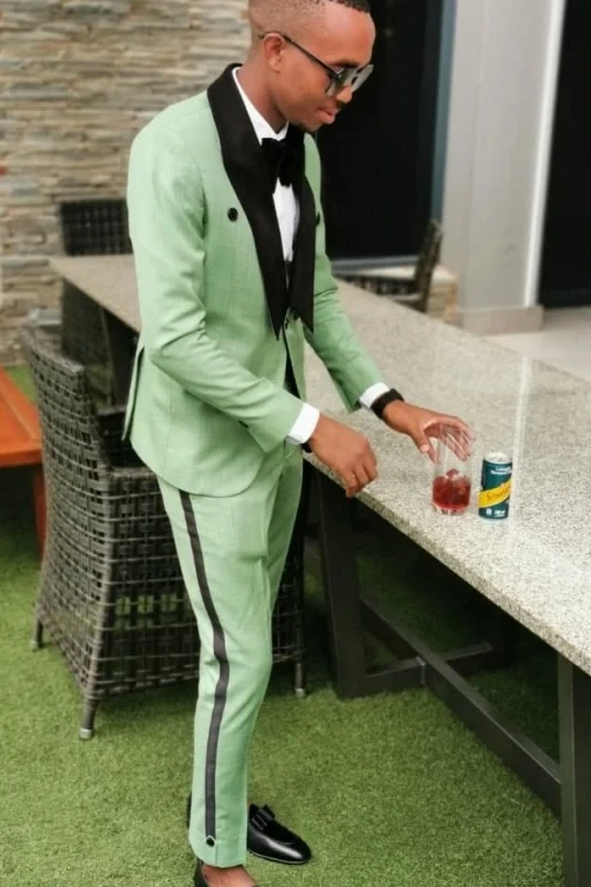 Jason Sage Double Breasted Prom Men Suits With Black Shawl Lapel