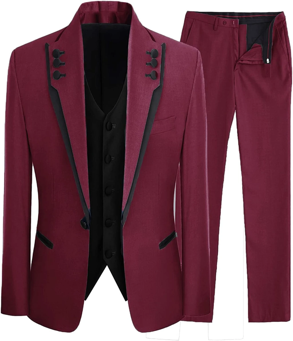 Jean Burgundy Shawl Lapel Three Pieces New Arrival Prom Suits