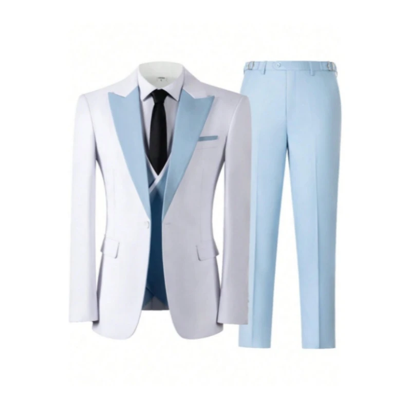 Jean Fashion White Peaked Lapel Three Pieces Prom Men Suits With Light Blue Pants
