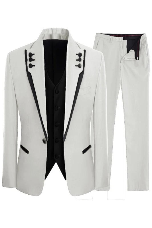 Jeremy Bespoke White Shawl Lapel Three Pieces Men Suits For Prom