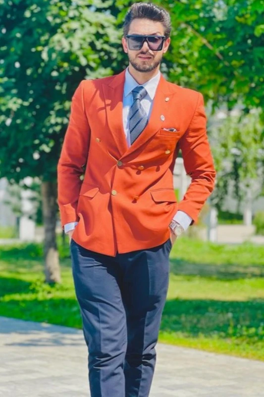 Jerry Orange Peaked Lapel Double Breasted Prom Men Suits