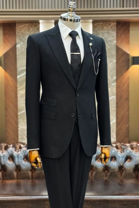 Jonas Black Peaked Lapel Three Pieces Business Men Suits