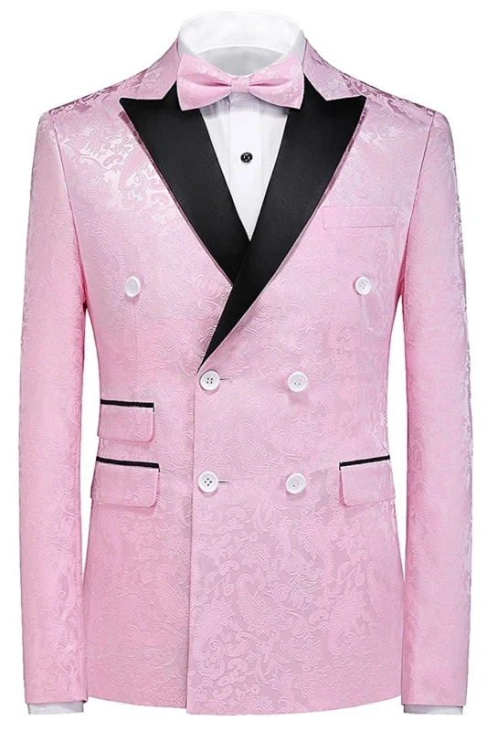 Jonathan Double Breasted Pink Jacquard Three Pieces New Arrival Prom Suits