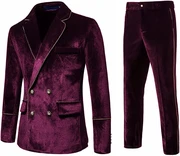 Kemp Glamorous Burgundy Notched Lapel Double Breasted Velvet Prom Suits