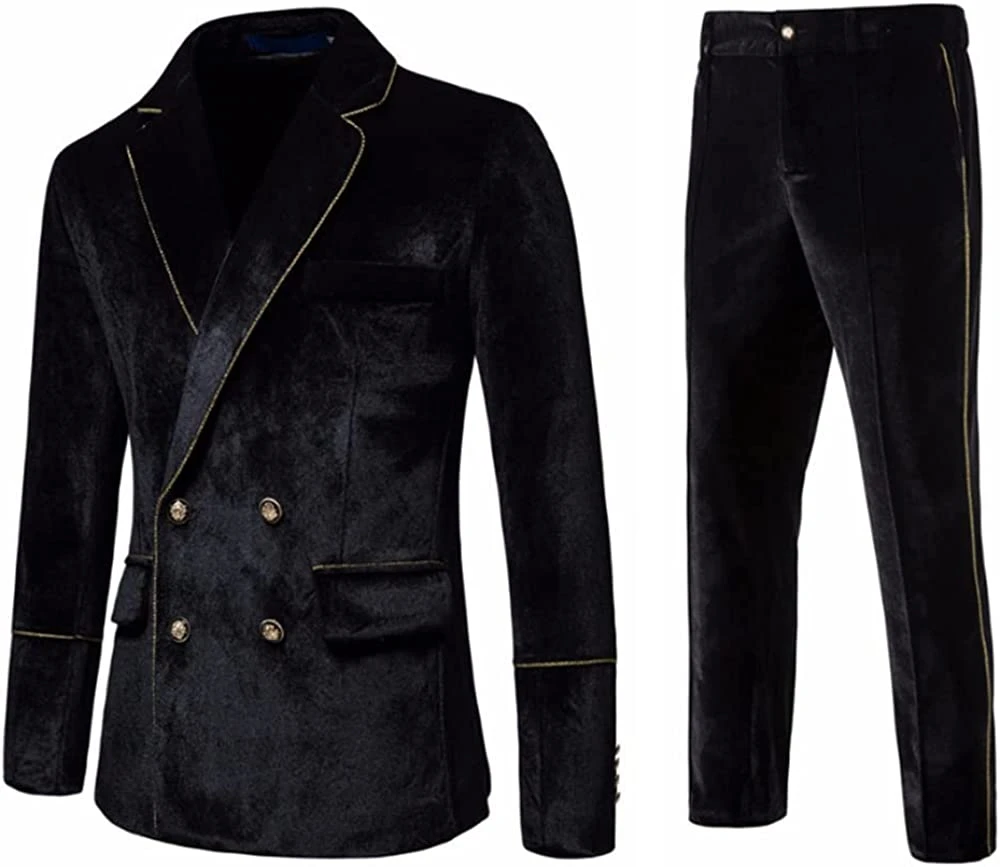Ken Fancy Black Notched Lapel Double Breasted Velvet Prom Suits