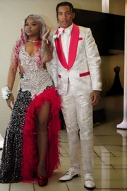 Kent Smart White Jacquard Prom Outfits With Red Shawl Lapel
