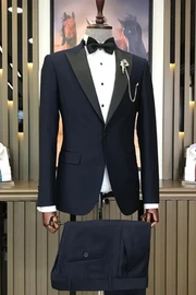Kerr Bespoke Navy Blue Peaked Lapel Two Pieces Prom Suits