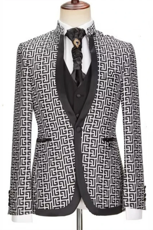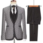 Kerr Black Shawl Lapel Jacquard Three Pieces Business Men Suits