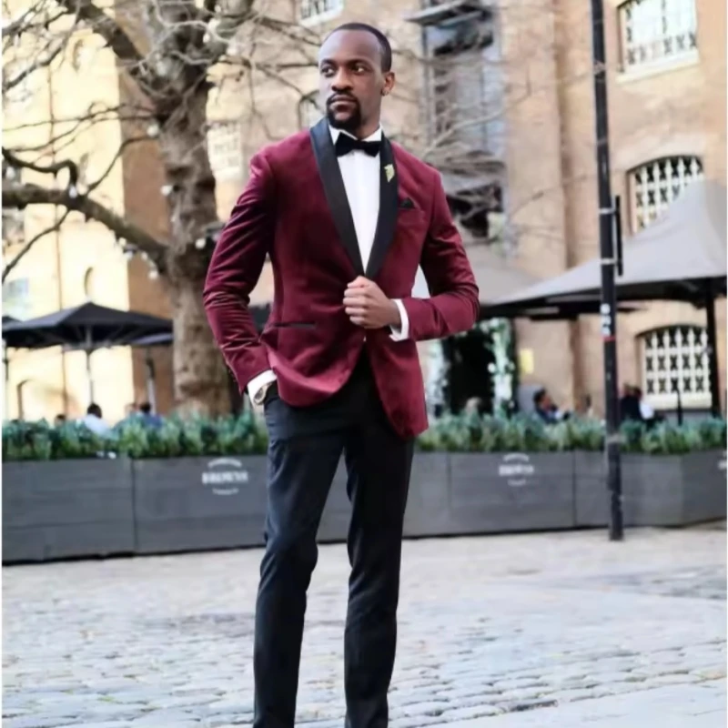Kim Burgundy Velvet Shawl Lapel Prom Men Suits