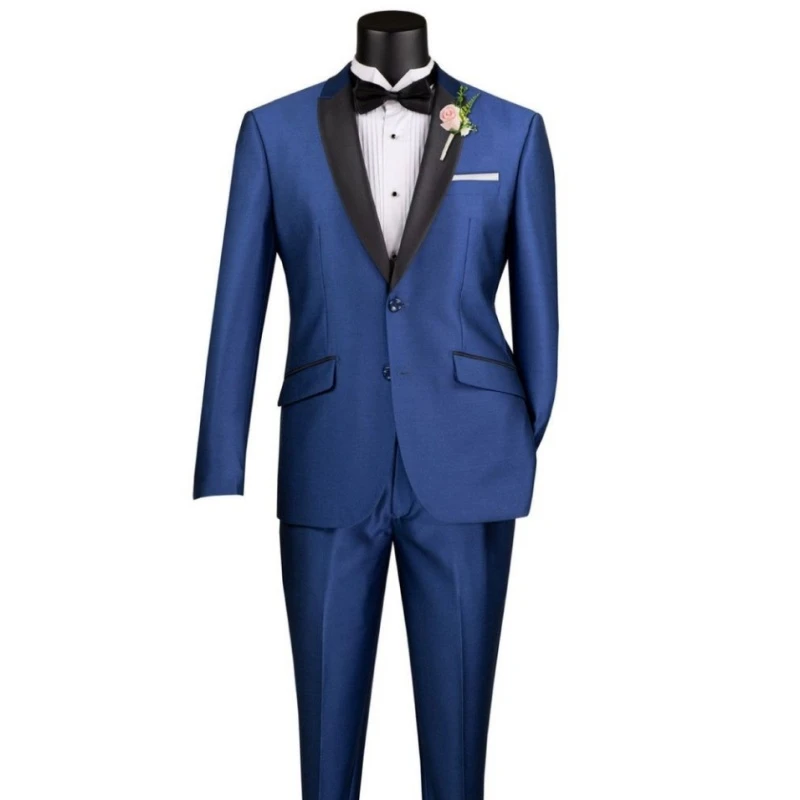Kim Simple Dark Blue Shawl Lapel Wedding Men Suits