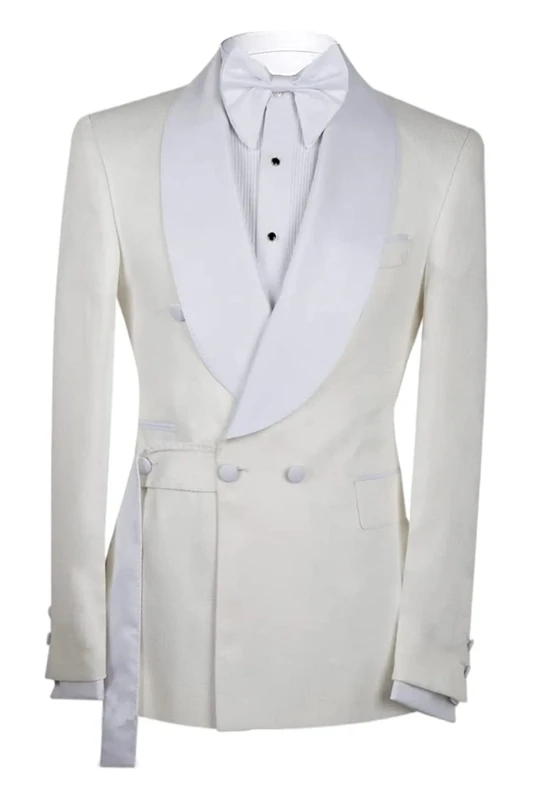 Lawrence Bespoke White Shawl Lapel Double Breasted Wedding Suits