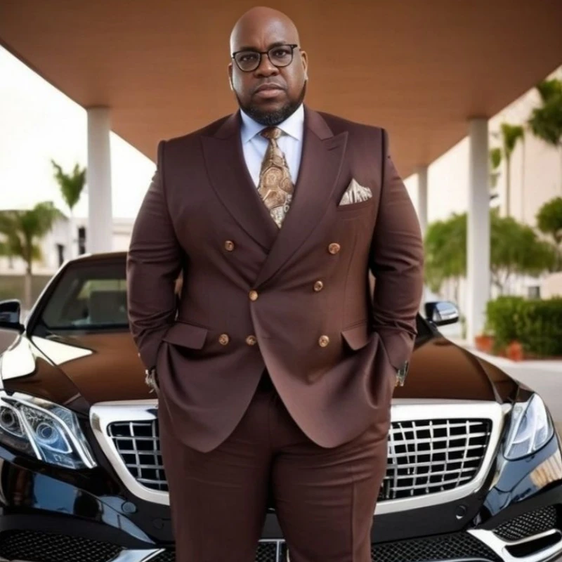 Leif Modern Dark Brown Peaked Lapel Double Breasted Big And Tall Prom Men Suits