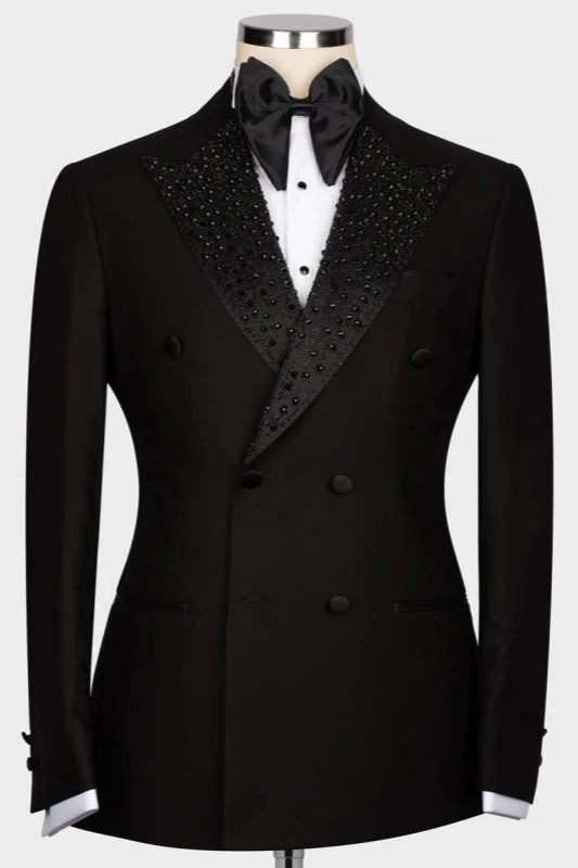 Lloyd Black Double Breasted Wedding Men Suits With Sequins Peaked Lapel