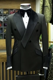 Logan Newest Black Double Breasted Plaid Wedding Men Suits With Velvet Shawl Lapel