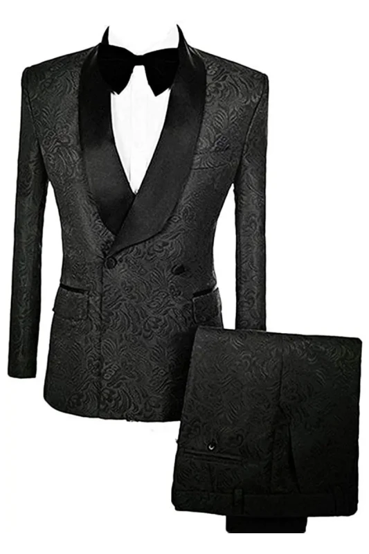 Madison Formal Black Double Breasted Jacquard Wedding Suits With Velvet Lapel