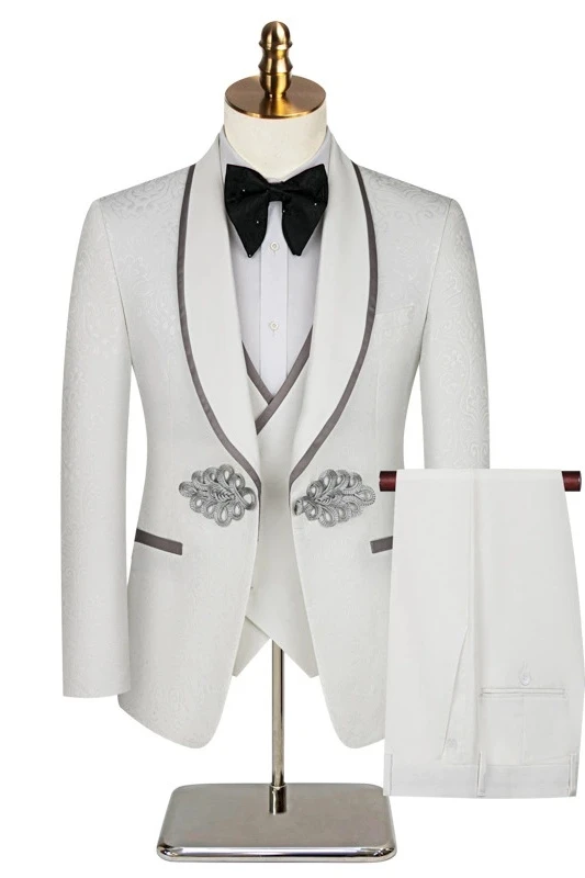 Marico Chic Ivory Shawl Lapel Three Pieces Jacquard Wedding Men Suits