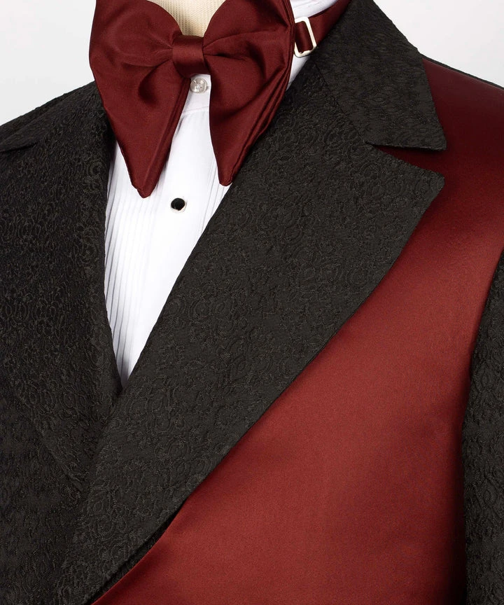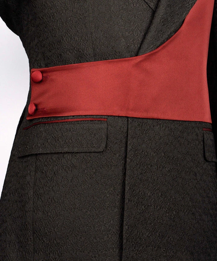 Marsh Chic Black Notched Lapel Jacquard Prom Men Suits With Burgundy Shoulder