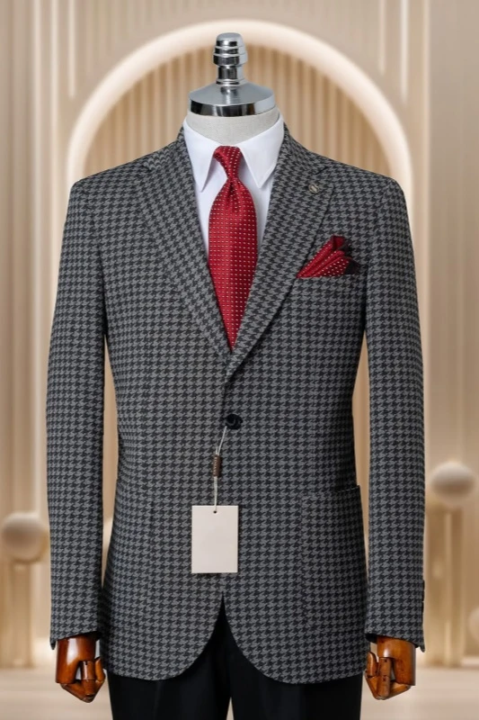 Marsh Dark Gray Notched Lapel Houndstooth Men Suits For Business