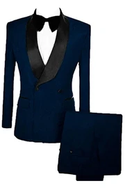 Marsh Navy Blue Double Breasted Jacquard Slim Fit Wedding Suits With Velvet Lapel