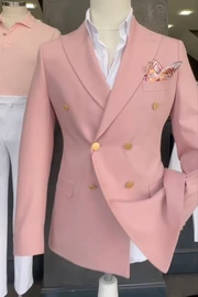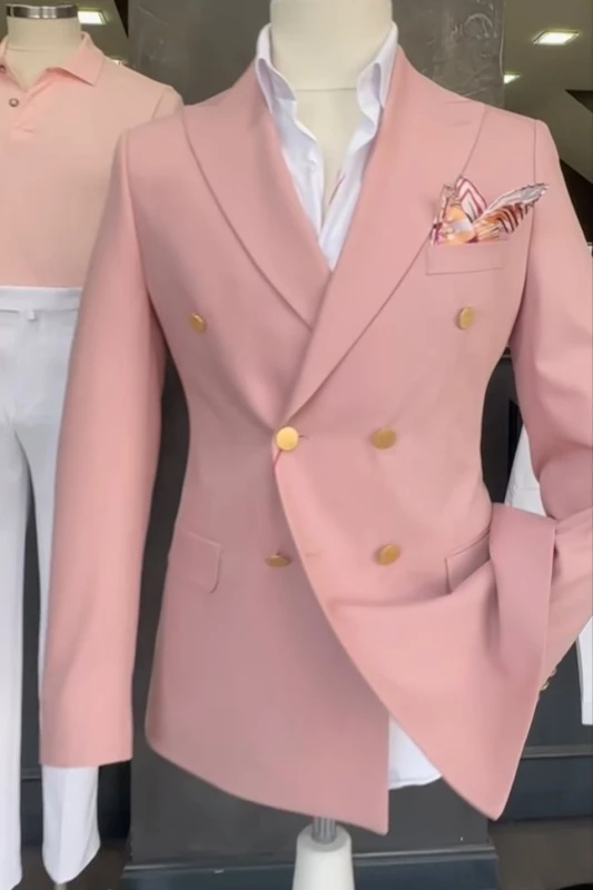 Martin Pink Peaked Lapel Double Breasted Prom Men Suits With White Pants
