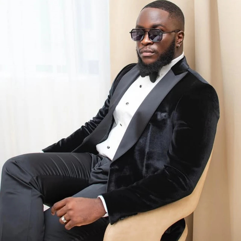 Marvin Black Peaked Lapel Velvet Big And Tall Prom Men Suits