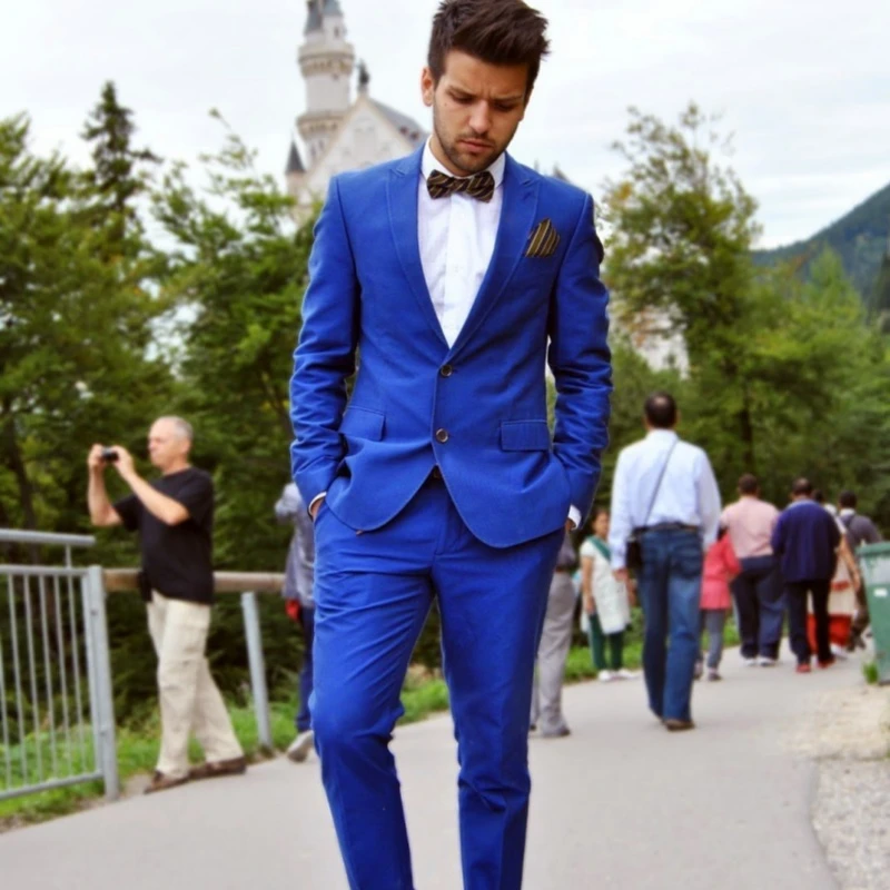 Max Royal Blue Peaked Lapel Prom Men Suits