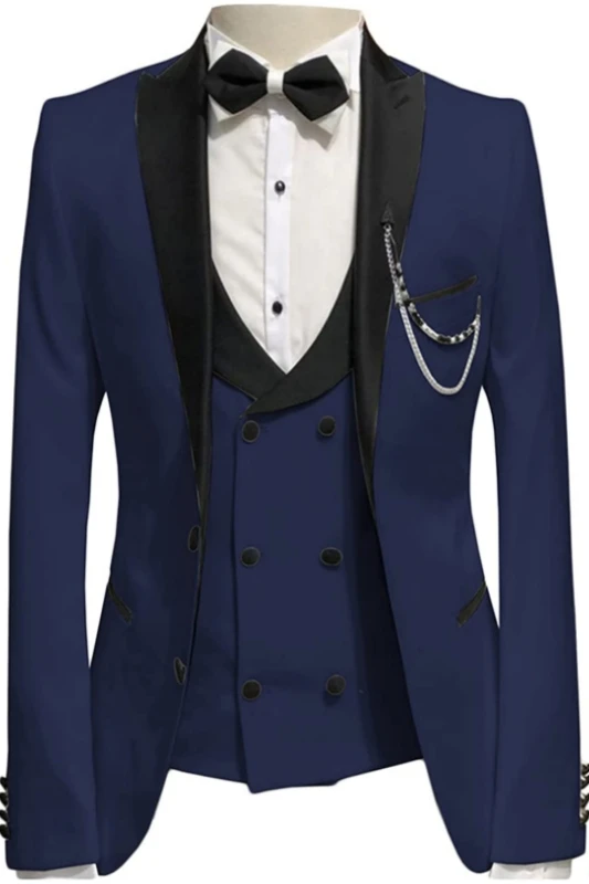 Michael Navy Blue Peaked Lapel Three Pieces Classic Prom Suits