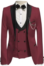 Morris Classic Burgundy Peaked Lapel Three Pieces Prom Suits
