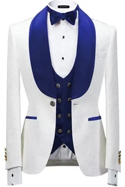 Myron Royal Blue Shawl Lapel Three Pieces New Arrival Jacquard Wedding Suits