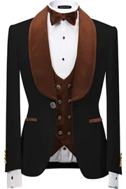 Nat Newest Brown Shawl Lapel Three Pieces Velvet Wedding Suits
