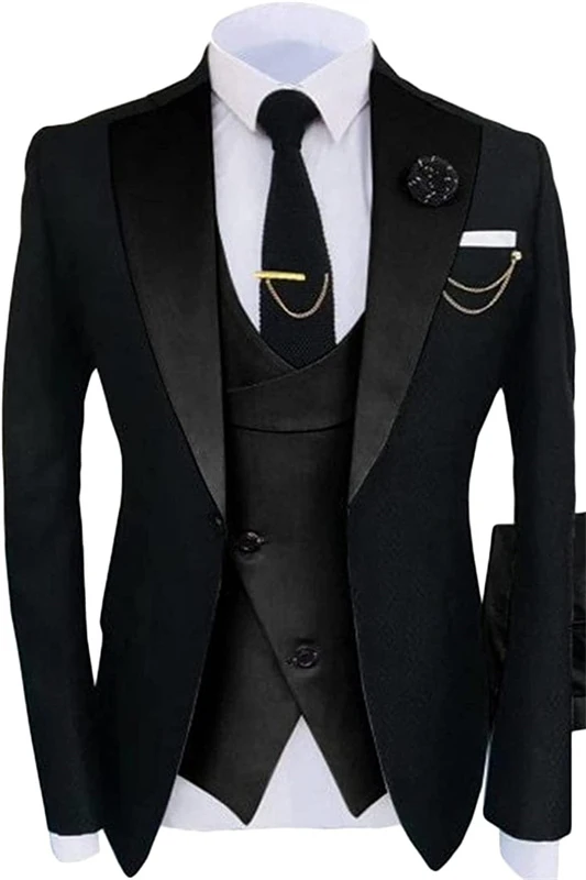 Nicholas Classic Black Shawl Lapel Three Pieces Prom Suits