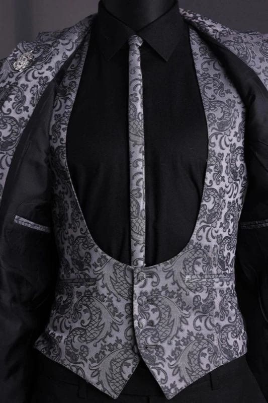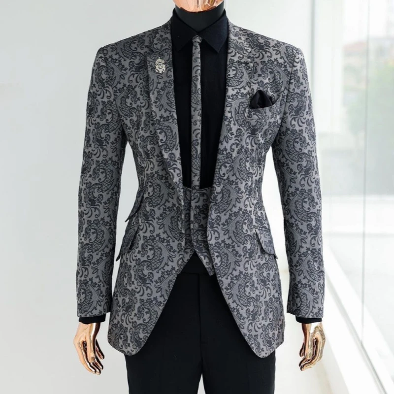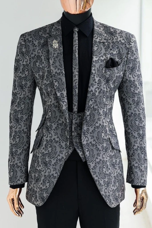 Nicholas Modern Gray Notched Lapel Three Pieces Prom Men Suits