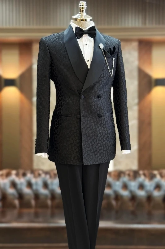 Nick Black Shawl Lapel Jacquard Wedding Men Suits
