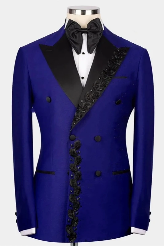 Nigel Stylish Royal Blue Peaked Lapel Double Breasted Appliques Wedding Men Suits