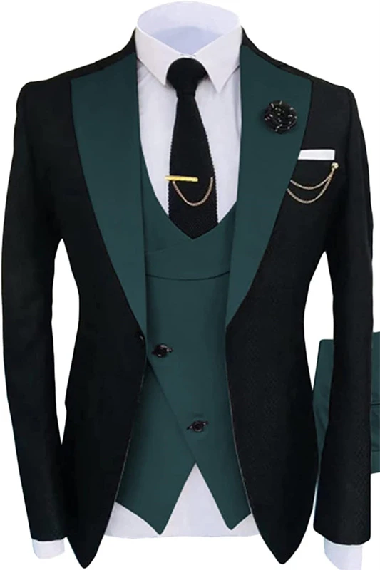 Noel Glamorous Dark Green Shawl Lapel Three Pieces Prom Suits