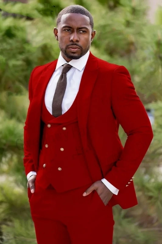Ogden Fashion Hot Red Peaked Lapel Double Breasted Three Pieces Men Suits