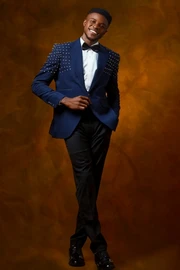 Osmond New Arrival Dark Blue Notched Lapel Men Suits Prom Outfits With Beadings