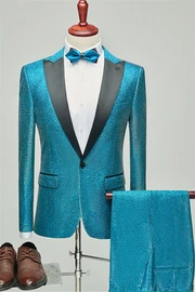 Paddy Fancy Teal Blue Sequins Peaked Lapel Two Pieces Prom Suits