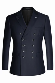 Parker Navy Blue Peaked Lapel Double Breasted Close Fitting Business Suits