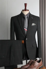 Paul Formal Black Plaid Notched Lapel Two Pieces Business Suits