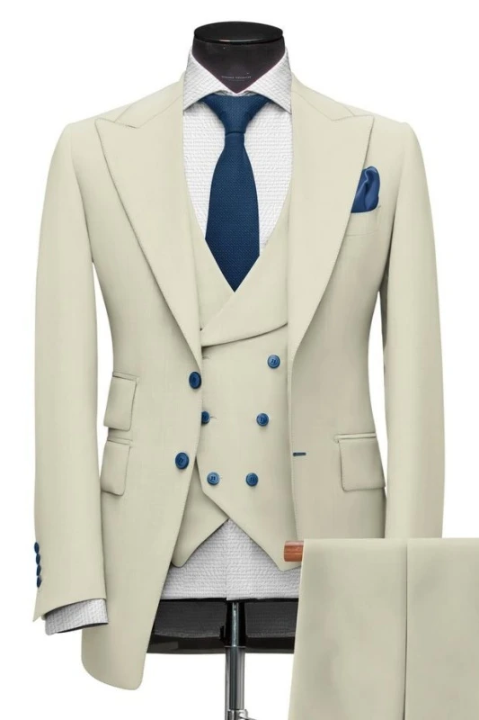 Pearsonn Chic Beige Peaked Lapel Three Pieces Business Men Suits
